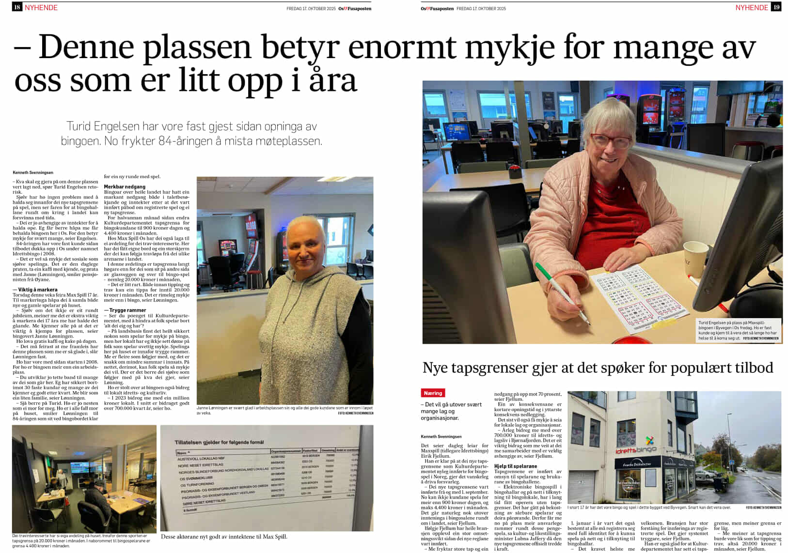 Turid Engelsen frykter å mista møteplassen: – Betyr enormt mykje for mange av oss som er litt opp i åra Les hele reportasjen i Os og Fusaposten